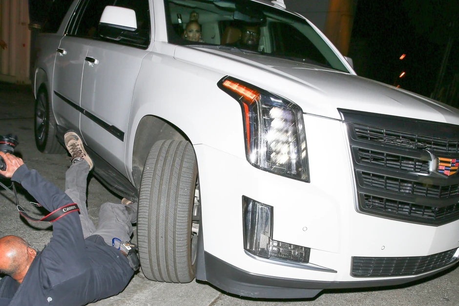 Fotografi su ih sačekali ispred restorana, a kada su izašli, slikali su ih. Međutim, u čitavom metežu, jedan paparaco se okliznuo i pao ispod automobila.