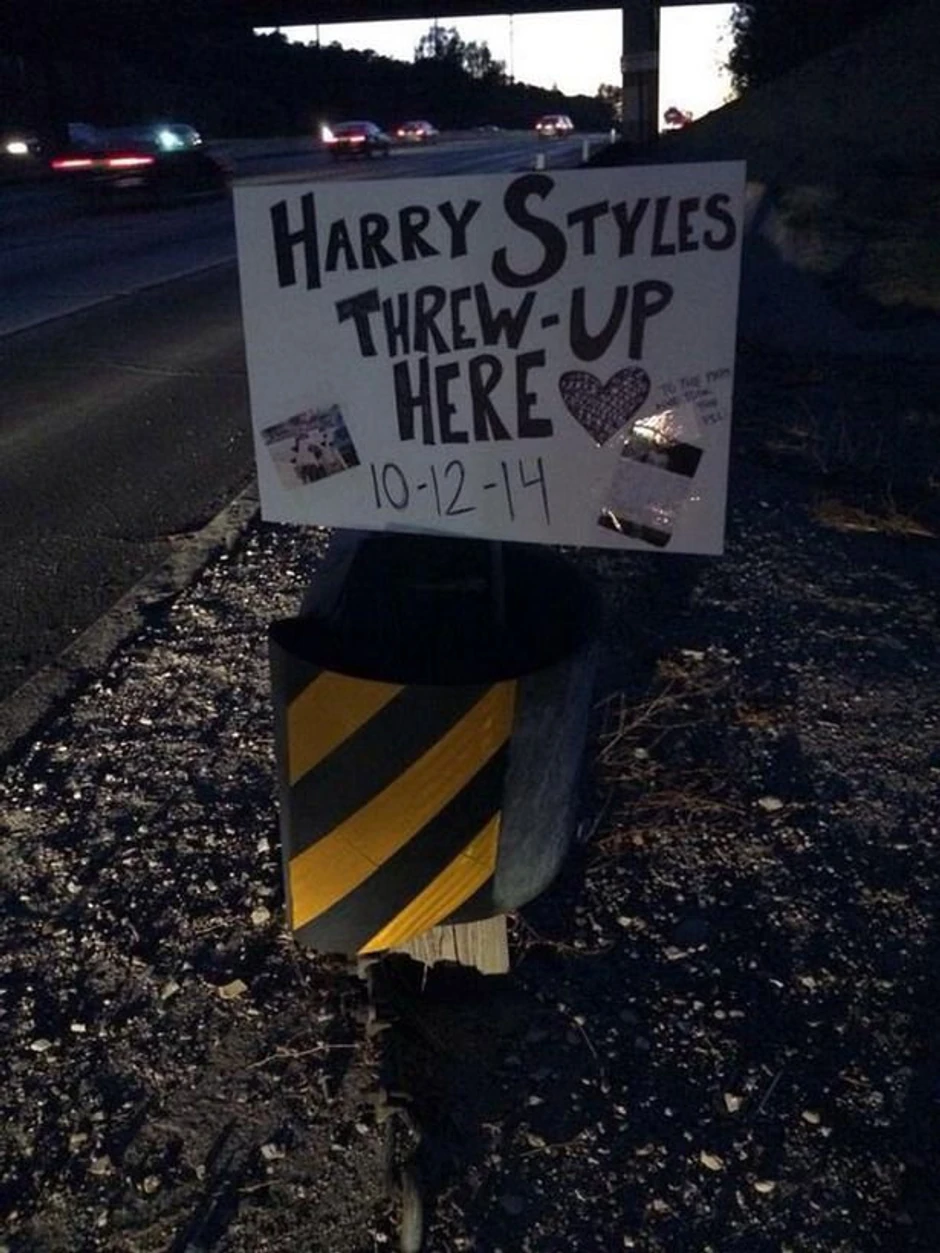 Jedan od zaluđenika grupom "One direction" napravio je pravi mali oltar od mesta gde je član benda Hari Stajls morao da zaustavi auto i povrati.