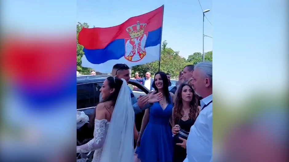 Svatovi su odavno stigli po mladu, a mlada je zablistala u beloj venčanici sa velom, dok se na snimku može videti kao se svi vesele uz muziku.