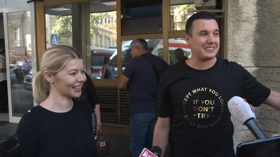 Danijela Karić i Ivan Mileusnić danas su sina Maksima izveli iz porodilišta "Narodni front", a tom prilikom oboje su bili obuzeti emocijama.