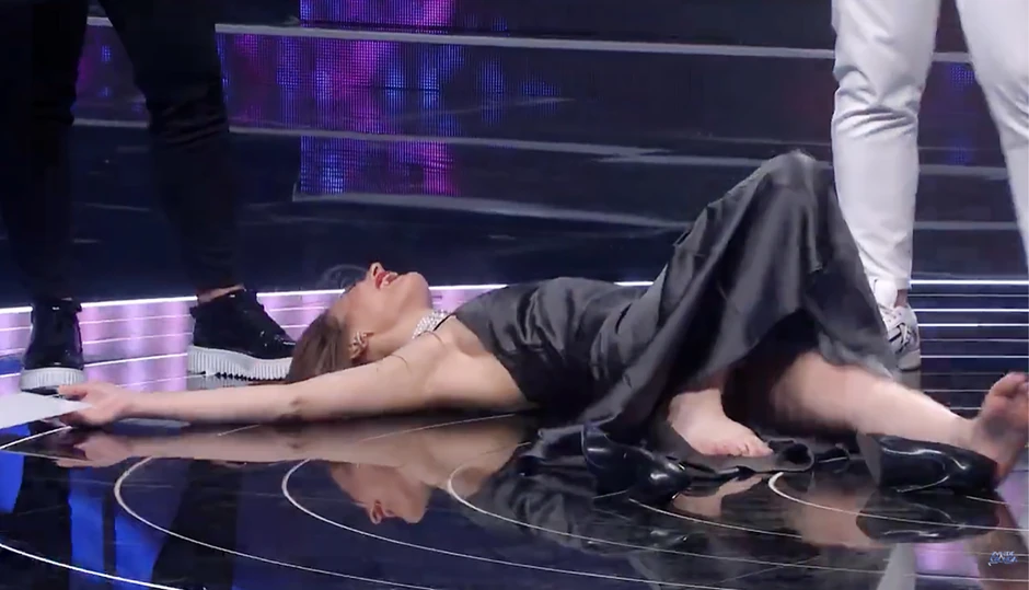 Ona se u baražu borila za prolazak, a kada je Voja Nedeljković izgovorio broj koji je ona držala u ruci, zaletela se na podijum, a onda se okliznula i pala nasred bine.