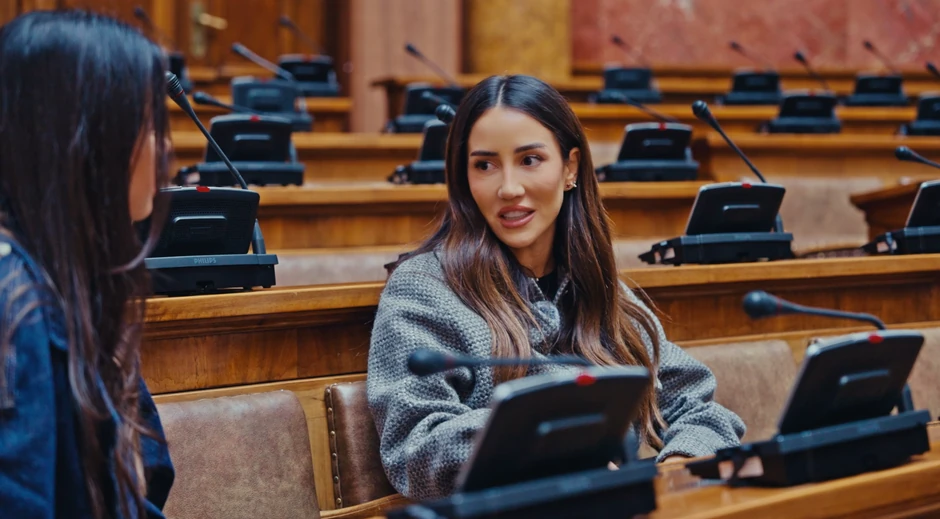 Tokom razgovora Tamara i Anabel su sele u klupe, kako bi u potpunosti osetile tu atmosferu koja vlada tokom zasedanja Skupštine, zatim stajale za govornicom, te su imale priliku da vide i kako funkcionišu tasteri za glasanje.