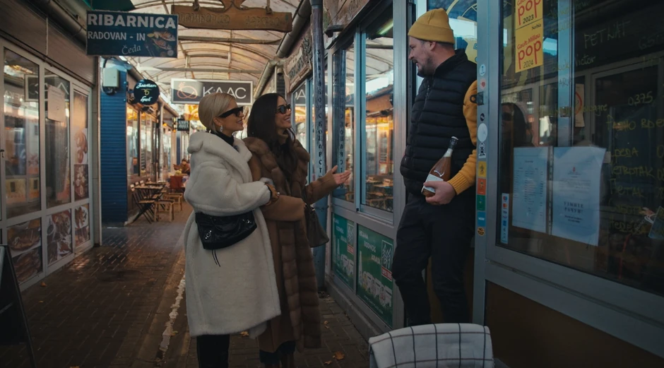 Kada su došle na pijacu, prvo su otišle u tradicionalni srpski restoran "Pretop". Tamo ih je dočekao jedan od prodavaca, a jednom rečju je zbunio Karolinu.