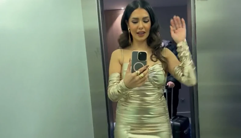 Pevačica Tanja Savić za novogodišnju noć odabrala je zlatnu, pripijenu haljinu uz telo, koja je istakla njenu figuru i elegantan stil. Tanja je menjala poze sa lakoćom i samopouzdanjem dok je pozirla u liftu, a fanovi su u komentarima isticali da nikada nije bolje izgledala.