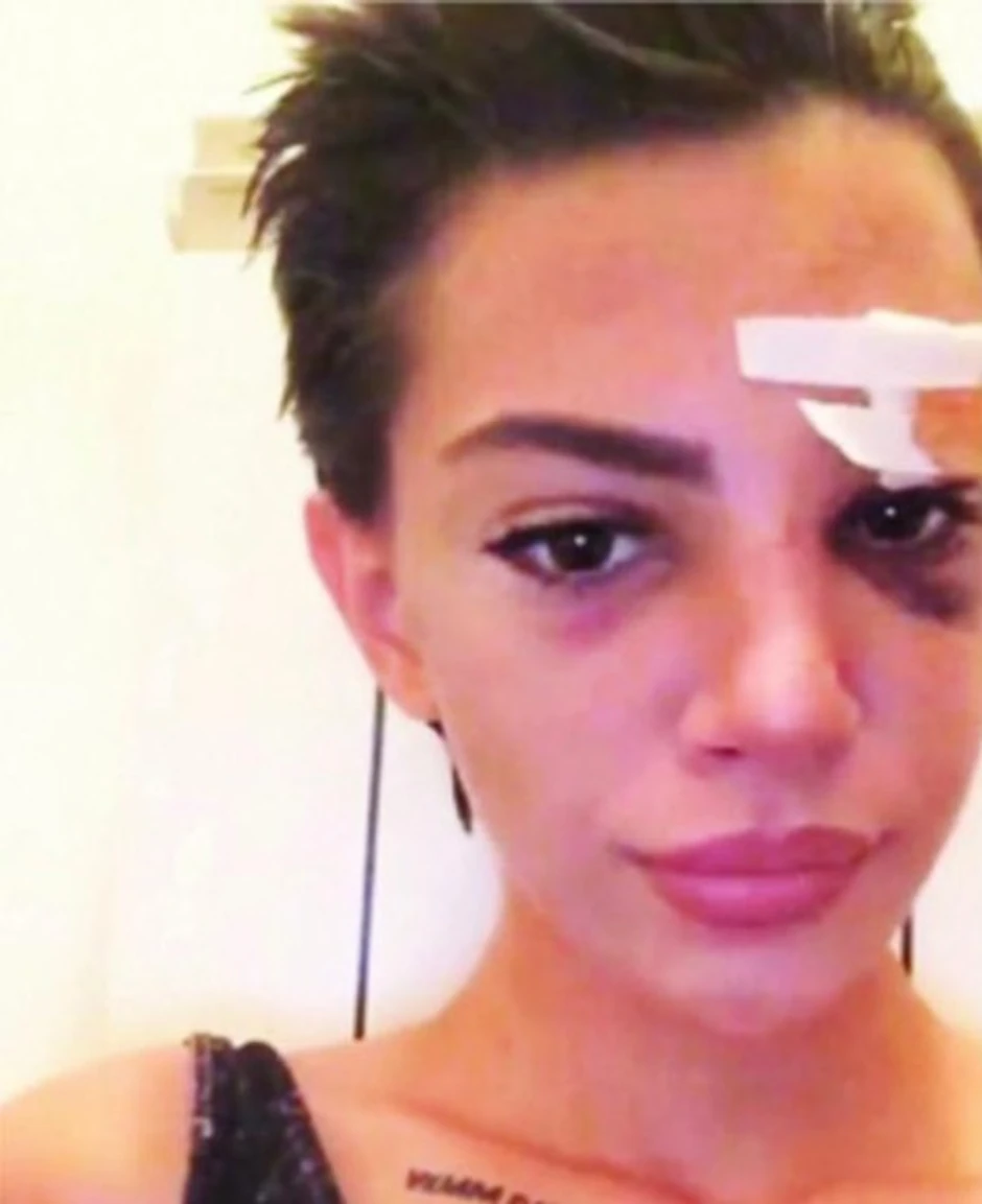 Simova je, naime, pokazala jezivu fotografiju nakon navodnog incidenta koji se dogodio pre nekoliko godina, na kojoj je imala podlive ispod očiju, masnice, glava joj je bila u zavojima, a kosa joj je bila ošišana.
