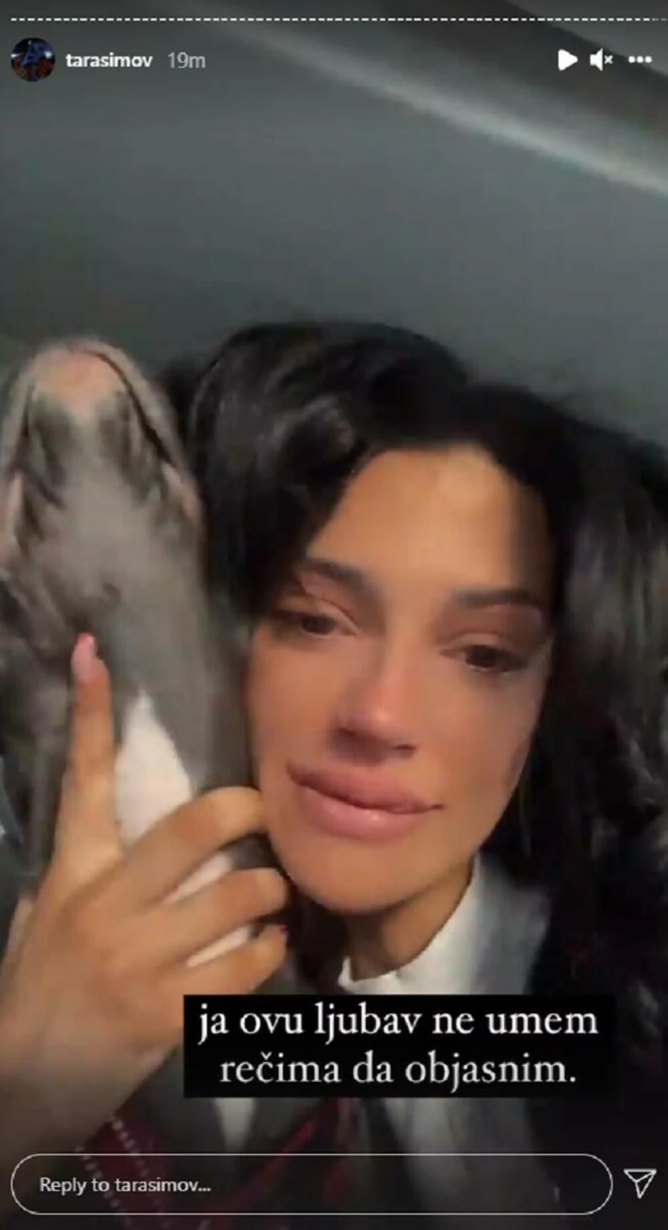 Naime, Simova je na svom Instagram nalogu objavila snimak na kom ljubi psa i plače. Mnogi su se zbunili zbog čega Tara lije suze, a ona je sve objasnila:
