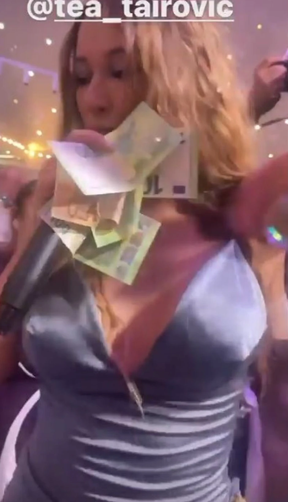 Tea je u centru medijske pažnje došla i kada je samo za jedan refren na slavlju uzela 5.000 evra dok su je gosti obasipali novčanicama. Ceo snimak sa veselja pogledajte ispod.