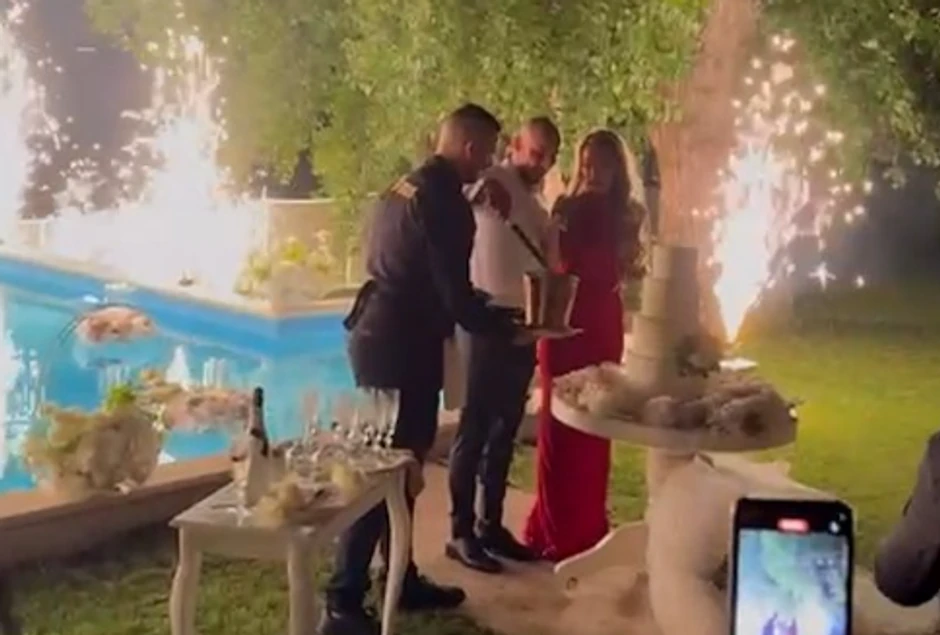 Vatromet je prštao oko njih, dok su zajedno sekli tortu, a iza u dvorištu se mogao primetiti i luksuzan bazen.