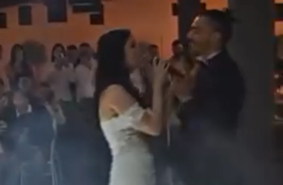 Tokom prvog plesa uzela je mikrofon, pa je mužu zapevala numeru "Da te volim", Aleksandre Kovač.