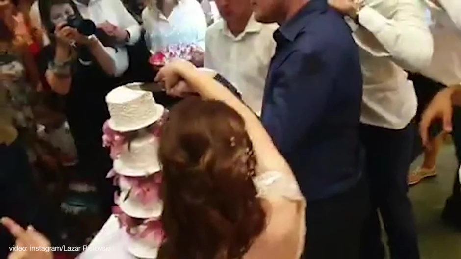 Kako se na snimku može videti, njegov sin Jovan i supruga Ljiljana igraju uz muziku, a onda zajedno presecaju četvorospratnu svadbenu tortu.