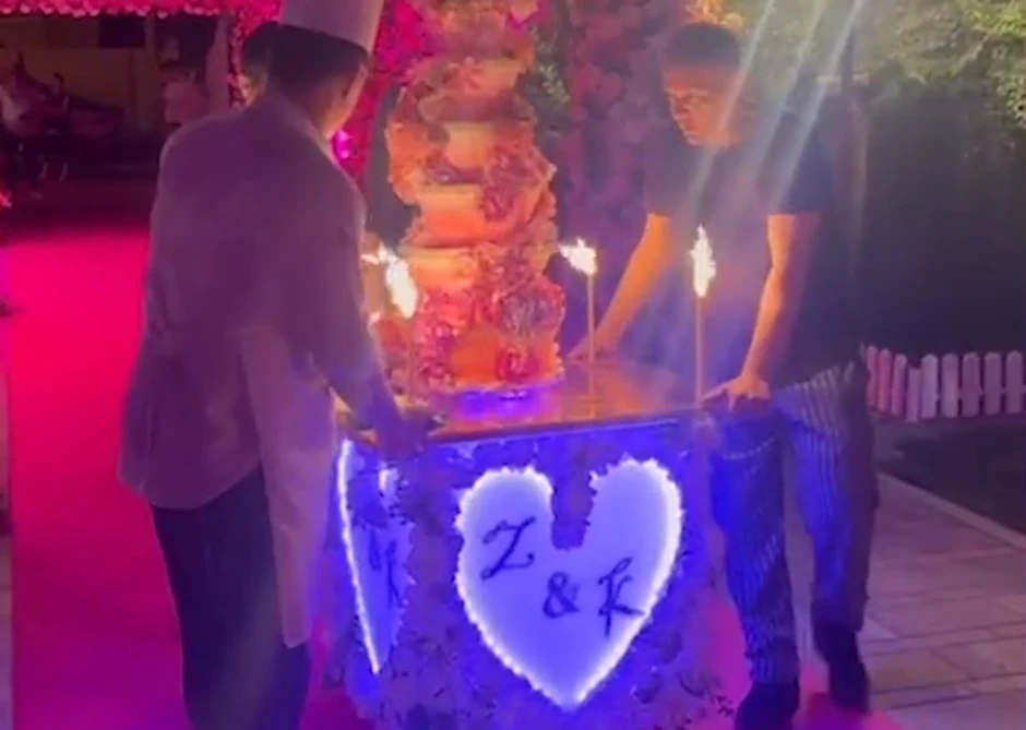 Predstavljena je spektakularni torta sa šest spratova sa inicijalima mladenaca.