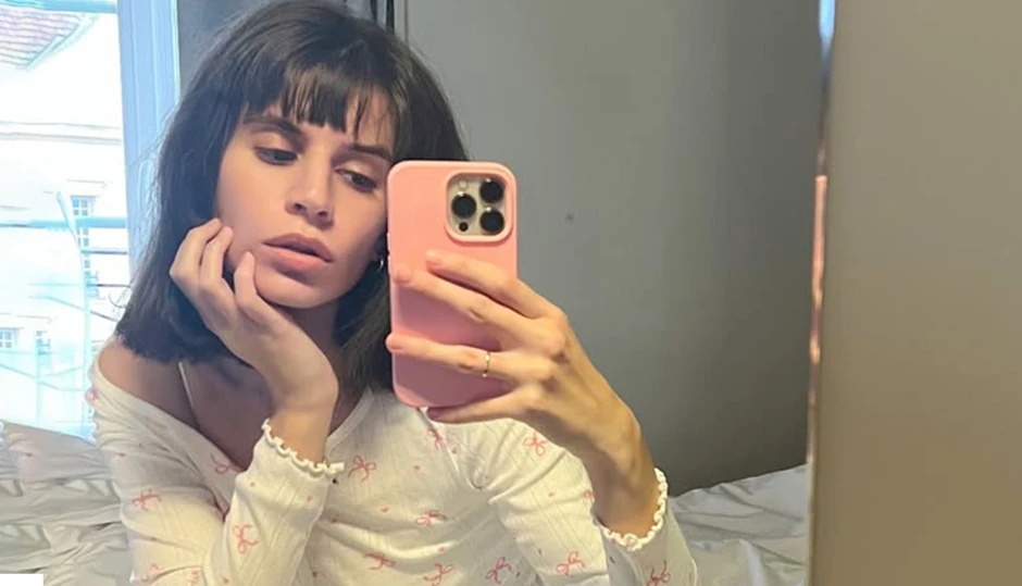 Marija je pozirala u raznim odevnim kombinacijama, a na jednoj od slika je vidimo u pižami kako pozira ispred ogledala dok sedi na krevetu.