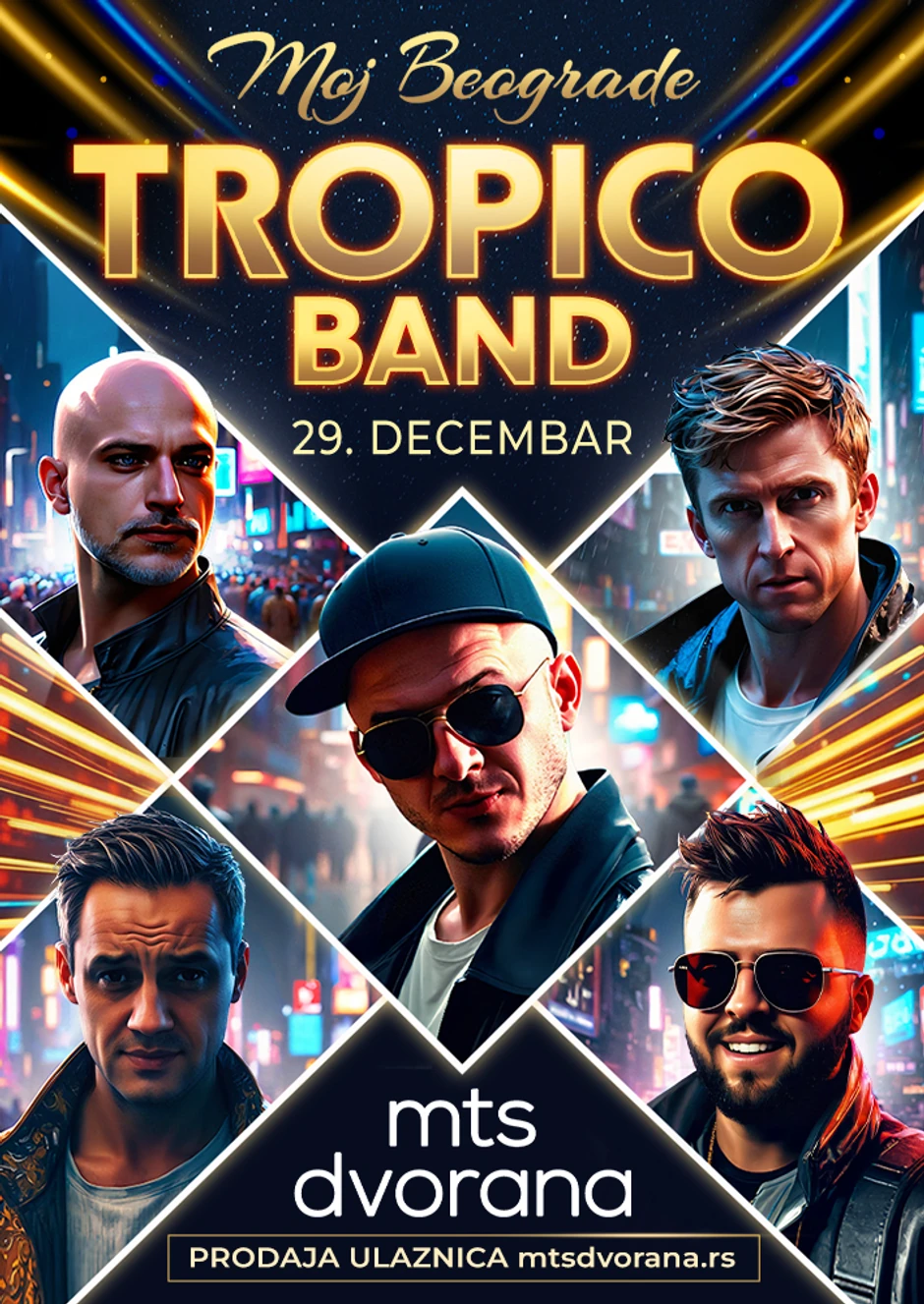 Jedan od najpopularnijih domaćih pop bendova „Tropico Bend“, vlasnici 80 pesama i preko 40 spotova , nastupiće 29. decembra prvi put u mts Dvorani. Bend u poznatu beogradsku salu, uoči novogodišnjih praznika dolazi, nakon što su publiku oduševili u punoj beogradskoj Areni, napunili dva Sava Centra i imali hiljade nastupa širom regiona i Evrope. Naime, nakon što su 2024. godine promovisali novi singl „Moj Beograde“, napravljen je uvod u izlazak novog albuma, a simbolično će i predstojeći koncert poneti isti naziv. Tom prilikom je, podsetimo, bend i najavio veliki koncert u prestonici „kako bi se odužli publici“, pa se čini da je taj momenat upravo došao najavljenim koncertom u mts Dvorani.