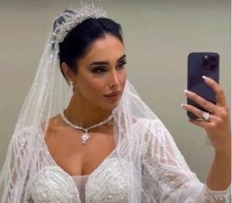 Naime, Aleksandra Subotić je podelila fotografiju na kojoj je pozirala u venčanici, potpuno doterana i našminkana, sa velom na glavi, dijamantskom ogrlicom i dijamantskim prstenom na ruci.