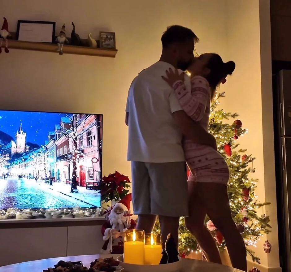 Na televizoru je takođe bio pušten praznični program, a Adriana je njoj i suprugu napravila čaj koji je sipala u novogodišnje šolje. Kako je sve odisalo novogodišnjim duhom, par je na sebi imao i pidžame sa istim simbolima, a nije izostao ni poljubac pored jelke.
