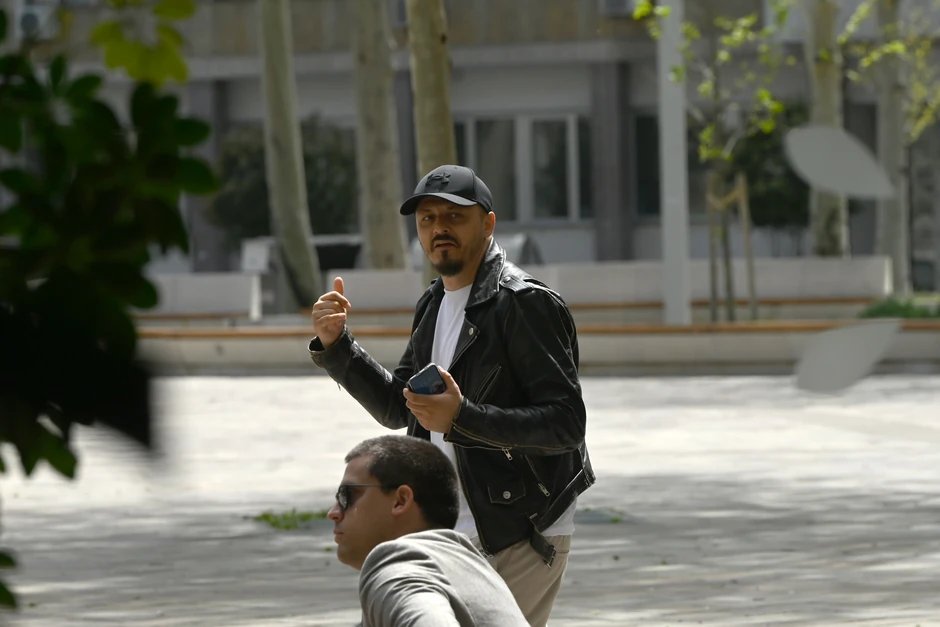 Nakon kratkog razgovora, pevač Daniel Kajmakoski je napustio sto za kojim je sedeo i uputio se do obližnje trafike, a crni kačket nije skidao.