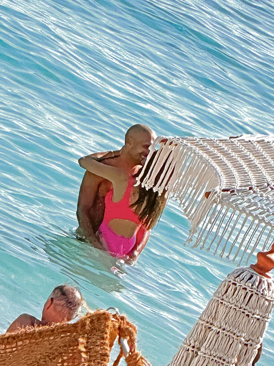 U zavučenoj privatnoj plaži, par je iznajmio baldahini, odakle su u vodu ulazili stepenicama koje vode do mora. Par se nije odvajao, a koliko su srećni govori to da se nisu razdvajali, da su se sve vreme držali za ruke i izgledali kao tinejdžeri.