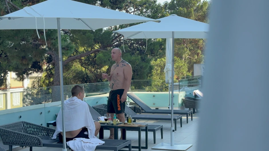 Tako je i Desingerica nakon brčkanja u bazenu pojurio do svoje ležaljke kako bi nešto prezalogajio. Inače, sve vreme je bio u društvu prijatelja.