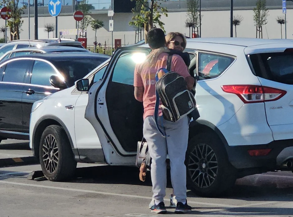 Na parkingu aerodroma, spakovali su svoj prtljag u auto, a onda su se grlili i poljubili.