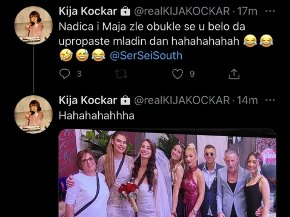 Nadica i Maja zle, obukle se u belo da upropaste mladin dan. (smeh) - dodala je Kija u narednom tvitu.