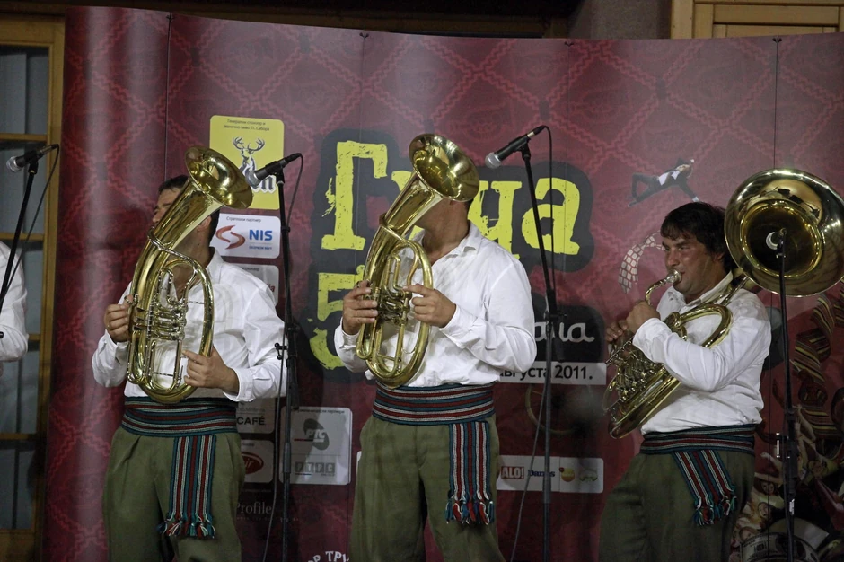 S prvim mrakom šumadijska varošica Guča pretvorila se u naveći centar muzike i zabave u ovom delu sveta. Polugole igračice po stolovima, stotine trubača i hiljde i hiljade turista raspoloženih da i poslednju paru daju za dobar provod.