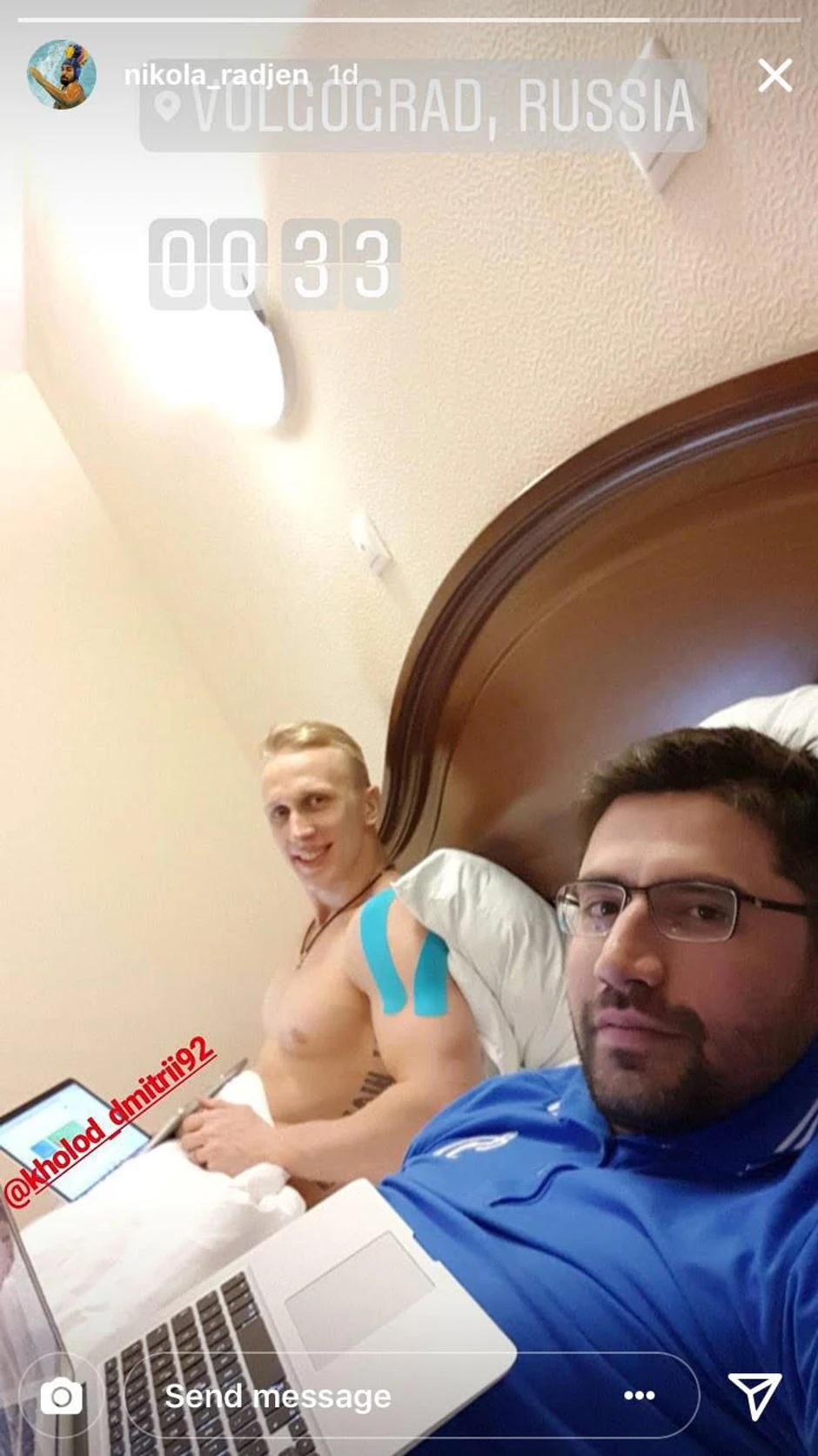 Na društvenim mrežama pojavila se njegova fotografija iz kreveta, na kojoj vidimo kako se zabavlja na lap-topu, a društvo mu pravi saigrač Dmitri Kholod, koji je pozirao u golišavom izdanju.