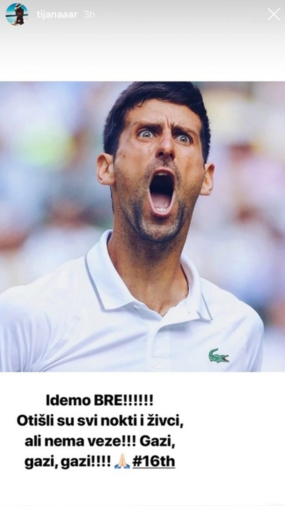 Naime, Tijana je, po svemu sudeći, vatreni Novakov fan, a na Instagramu je zbog pobede srpskog tenisera napisala sledeće: