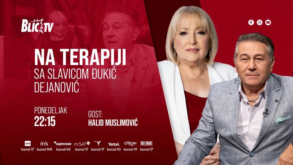 Ponedeljak veče od 22.15 sati rezervisano je za emisiju "Na terapiji sa Slavicom Đukić Dejanović" u kojoj možete čuti životne ispovesti naših javnih ličnosti, a ovog ponedeljka gost emisije je Halid Muslimović.