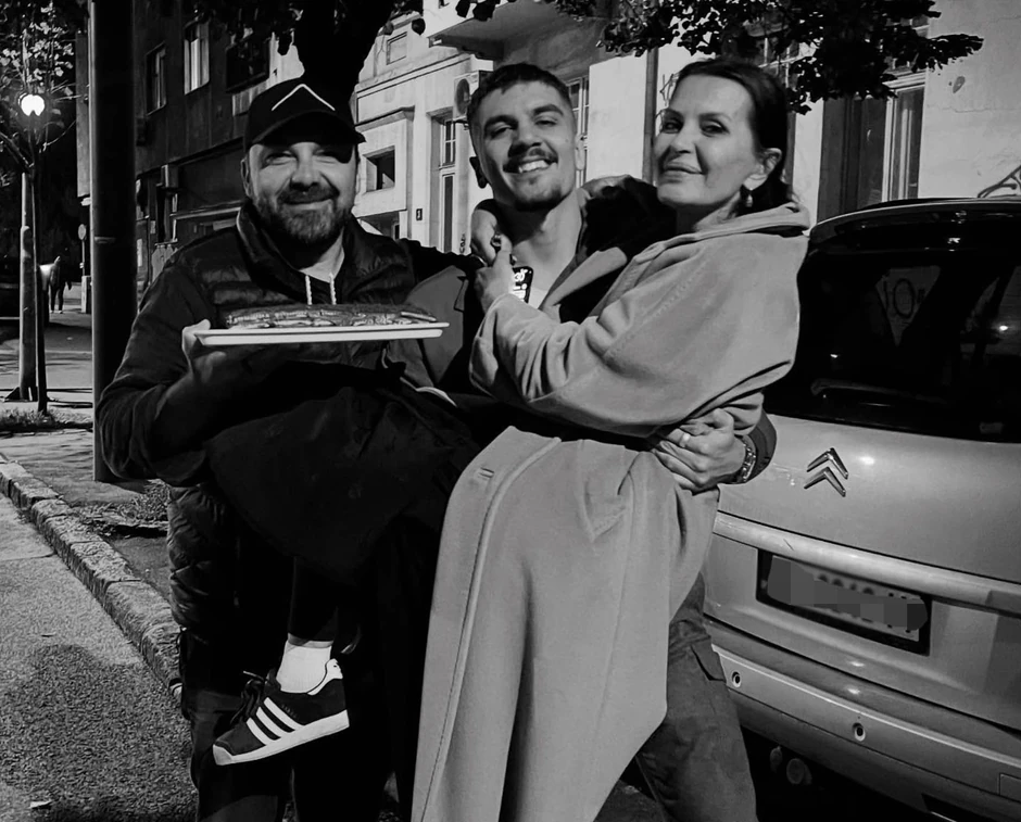 Sudeći po fotografijama, da se zaključiti da je ponosna majka Elena bila posebno radosna, budući da je u jednom momentu skočila sinu u zagrljaj, a Jugoslav je pored držao tortu i nije skidao osmeh sa lica.
