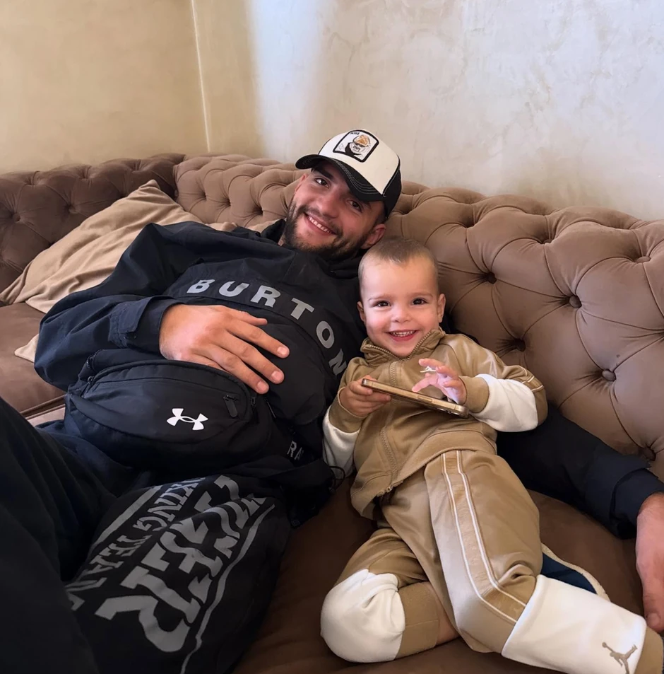Na Instagramu je podelio dirljivu fotografiju na kojoj sedi na krevetu sa svojim srednjim sinom Krstanom, a obojica su u udobnim trenerkama, nasmejani i zagrljeni.