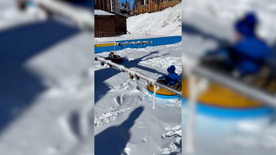On je prvo snimio najstarijeg sina Željka dok je jeo toplu čokoladu, a onda je snimio njega i Krstana kako sede u gumama i vrte se na snegu.