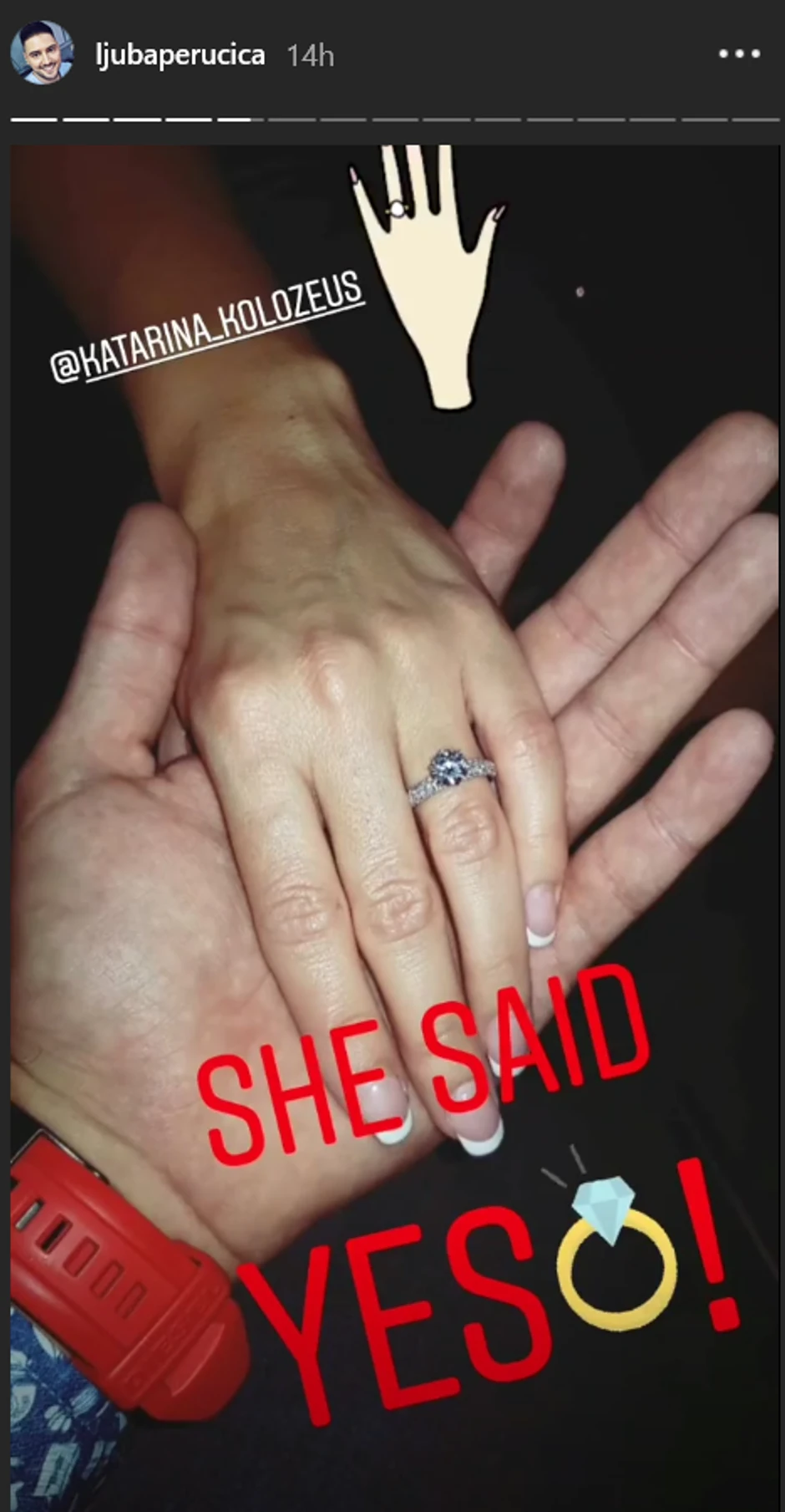 Perućica je naručio balone, među kojima je bio jedan u obliku vereničkog prstena, i zaprosio je voditeljku pred članovima njene najuže porodice.