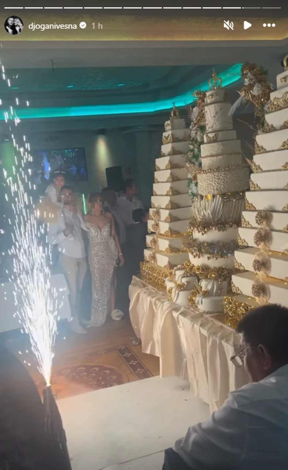 U svadbenoj atmosferi su se isticale tri džinovske torte od 12 spratova.