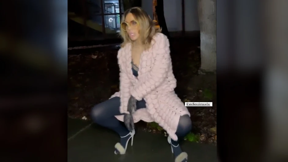 Naime, na snimku vidimo pevačicu u čarapama i brusu dok đuska i uvija se u parku ispred zgrade, a nema sumnja da su prolaznici i komšije bile začuđene ovakvih pevačicinim ponašanjem usred noći.