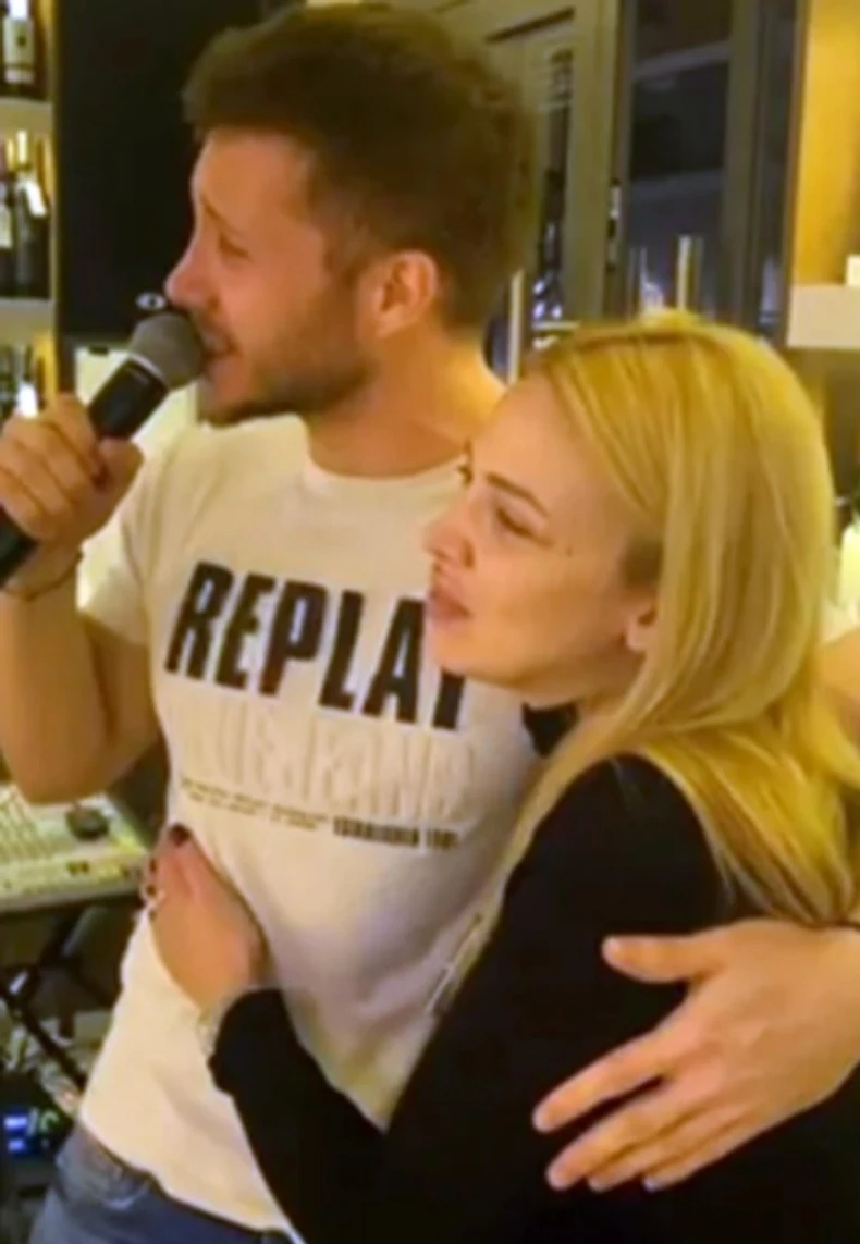 Njih dvoje su sve vreme bili zagrljeni, a onda je pevačica u jednom trenutku počela da mu broji pločice na stomaku.
