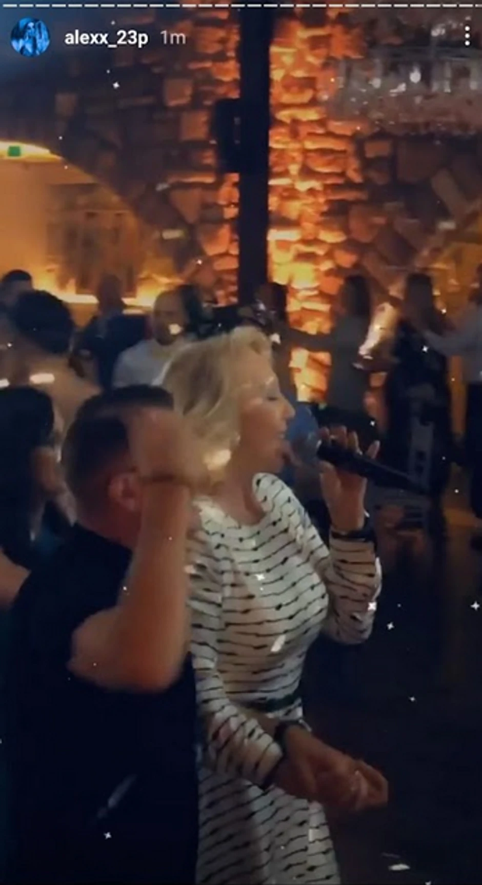 Nakon što su mladenci isekli spektakularnu tortu, mikrofona se latila i pevačica Lepa Brena, sa kojom je Popović izgradio imperiju.
