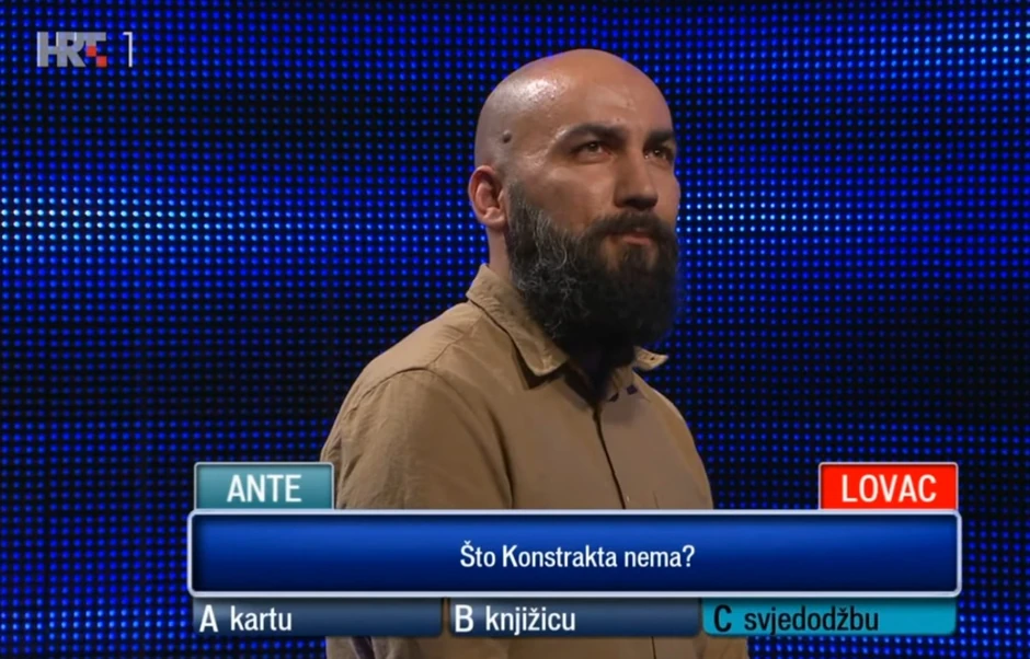 Jednom takmičaru je, naime, postavljeno pitanje: "Šta Konstrakta nema?", dok je u ponuđenim odgovorima stajalo: kartu, knjižicu, svjedodžbu.