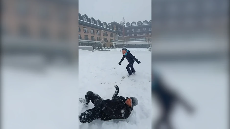 Nosio ju je, a onda su odmeravali snage na snegu, dok su ih snimali i navijali. Teniser se prevrnuo pa kroz osmeh poručio: "Ona je pobedila!"