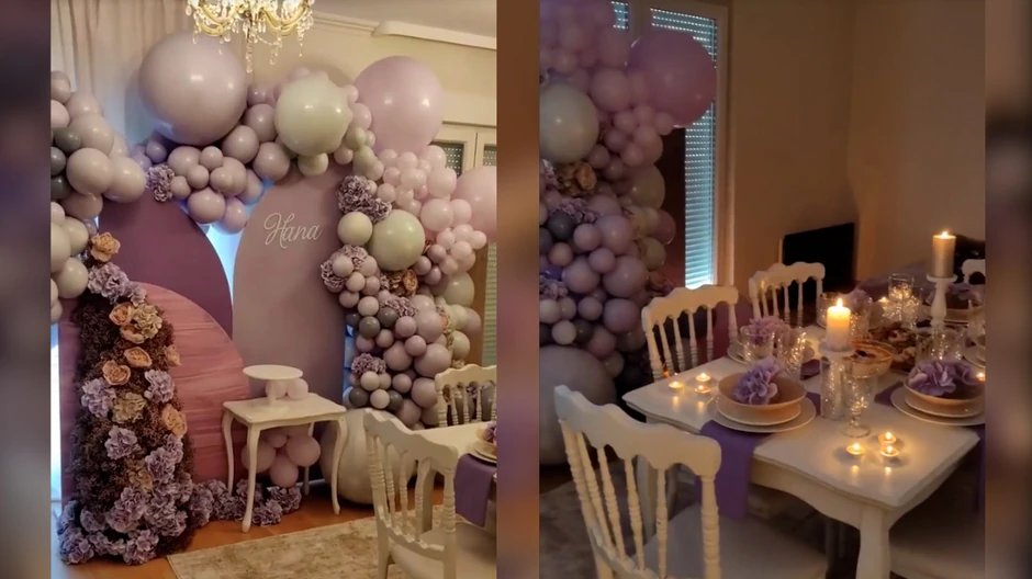 Nata je posebnu prostoriju opremila savršeno, postavila je veliki, beli sto sa lila detaljima, a na zidovima su bili baloni i ispisano Hanino ime. Ona se potrudila da naslednici ulepša dan iako je navela da Hana nije želela da slavi svoj rođendan.
