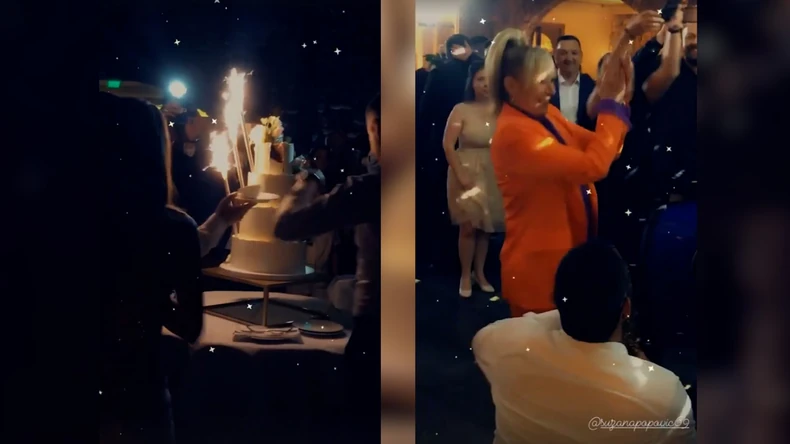 Vrhunac slavlja bila je mladenačka torta na 4 sprata i trubači, koji su kleknuli ispred mladoženjine majke Suzane Jovanović.