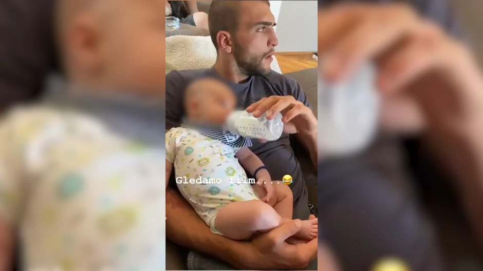 Ovog puta sa brojnim fanovima podelila je kako izgleda podne u njihovom domu, a na videu Veljko u naručju drži malenog Željka, hrani ga i uspavljuje.