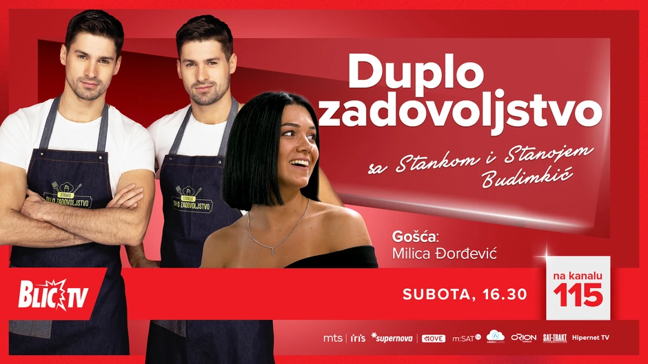 Ove subote u 16.30 sati samo na Blic televiziji pratite emisiju "Duplo zadovoljstvo" i saznajte nove recepte za zdrave obroke od naših domaćina Stanka i Stanoja Budimkića i njihove gošće Milice Đorđević.
