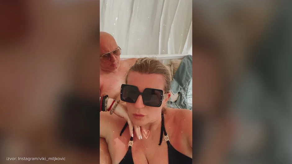 Naime, Viki i Taške su uživali ispod baldahina, a pevačica je iskoristila trenutak kako bi ih snimila. Taške je bio bez majice i sa naočarama za sunce, dok je Viki na sebi imala kupaći kostim i crne naočare za sunce.