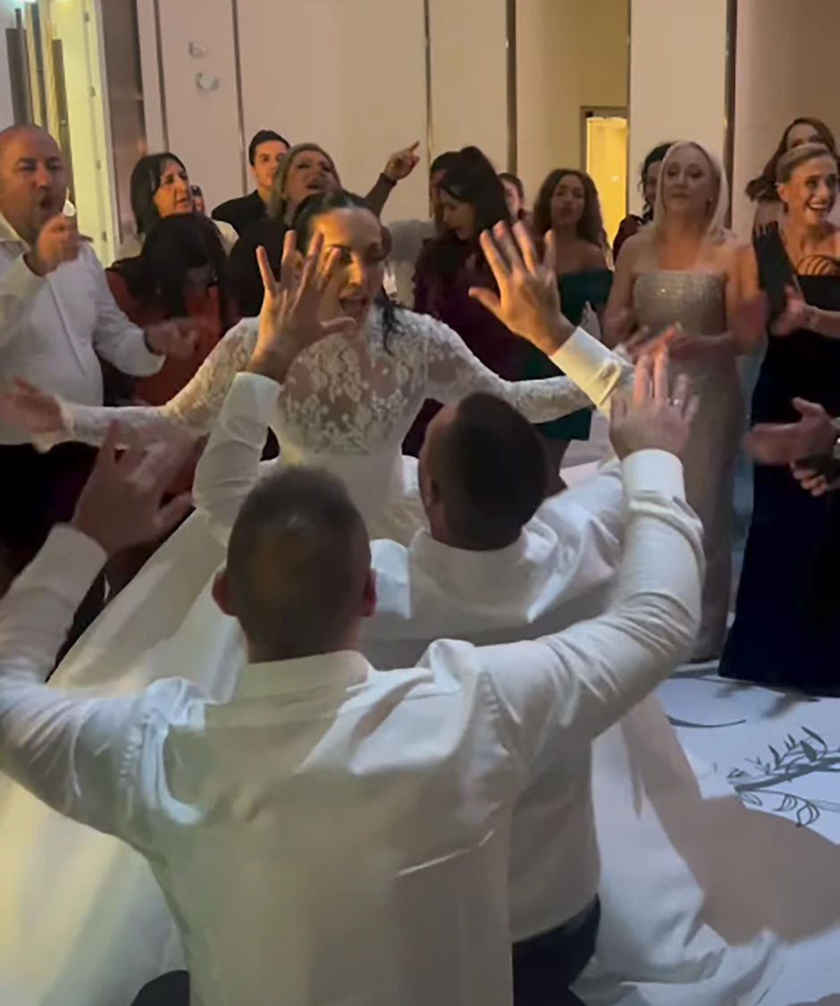 Naime, Milica Pavlović je na svom Instagram profilu objavila snimak na kom vidimo nju, prelepu mladu Tamaru u raskošnoj venčanici i Aleksandru Troicki, ženu Viktora Troickog koja je bila u dekoltiranoj haljini, pa su grudi umalo ispale dok je igrala.