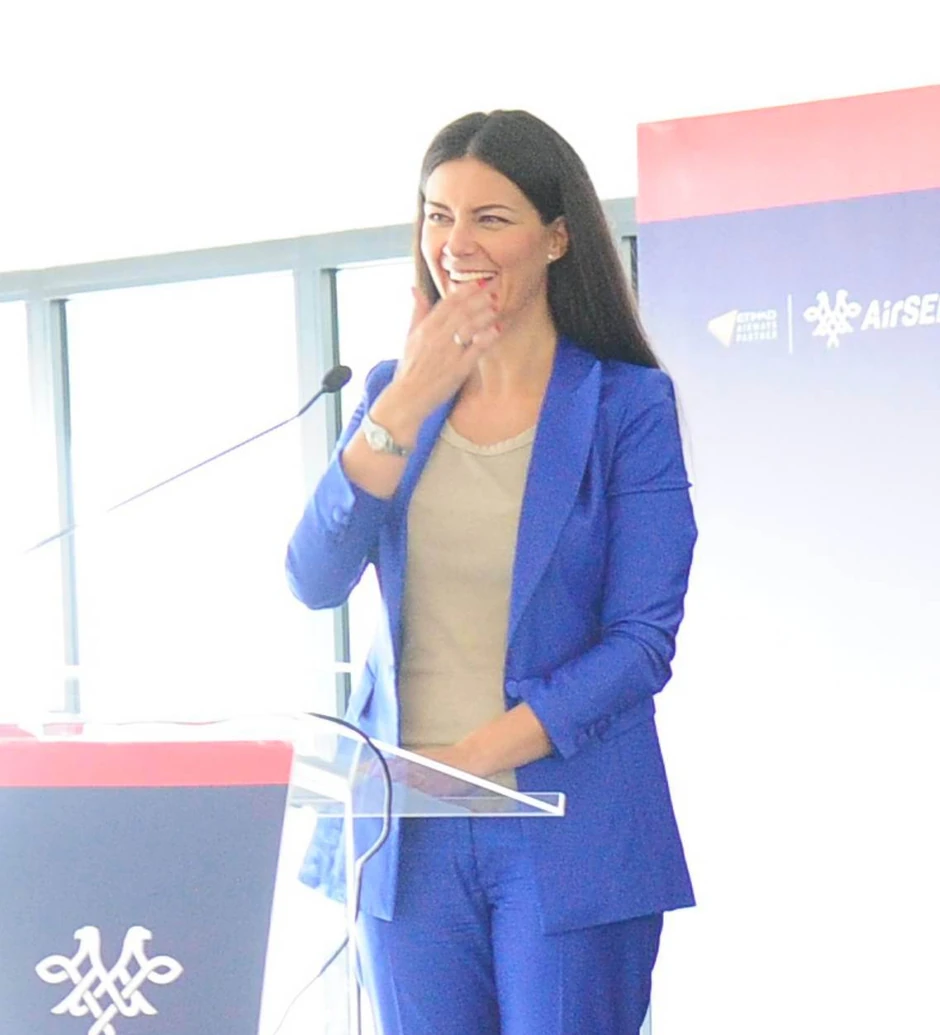 Voditeljka Marija Kilibarda po prvi put je pokazala venčani prsten na predstavljanju aviona Nikola Tesla, koji je danas poleteo sa beogradskog aerodroma za Njujork.