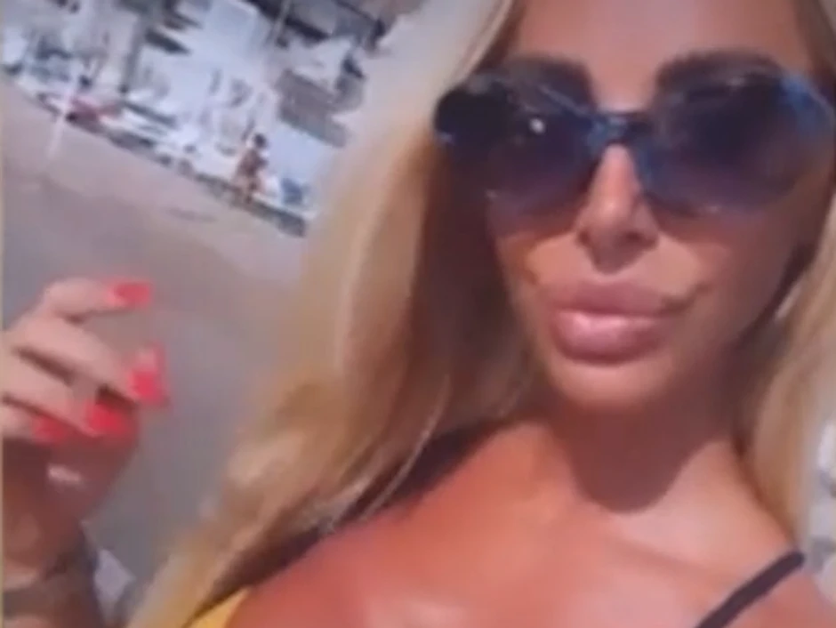 Pokazala je kako, poput Pamele Anderson u seriji "Čuvari plaže", ulazi u more u jednodelnom kupaćem kostimu, dok su bujne obline u prvom planu, a sličnost sa kanadskom glumicom je evidentna.