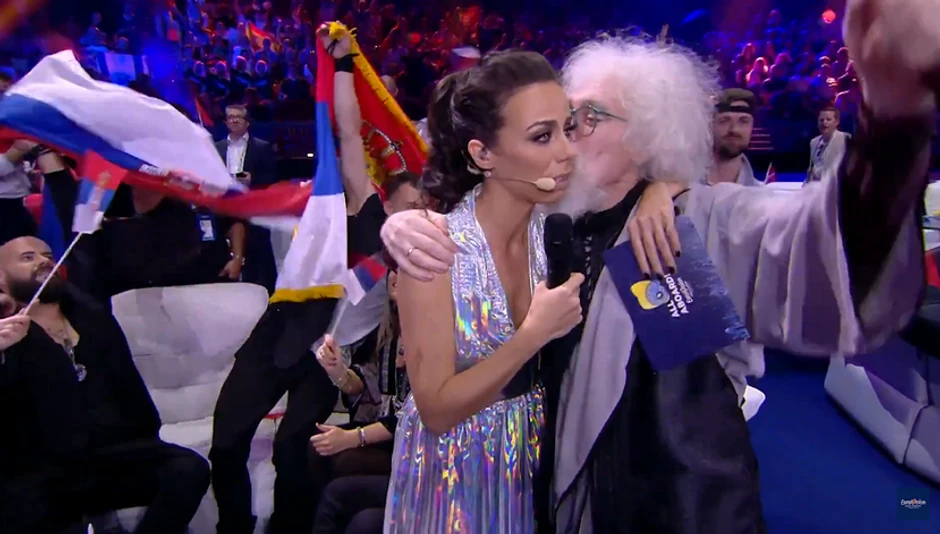 Ovacije su usledile kada je lepa voditeljka prišla predstavnicima Srbije, koji su je odmah pozdravili. Nakon što su je Aleksandar Radulović i Mladen Lukić poljubili u obraz i izjavili da su zaljubljeni u nju, ona je uradila nešto što je sve nasmejalo.