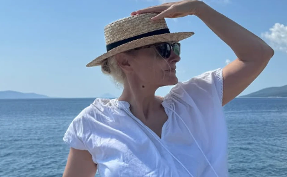 Ona, inače, ne otkriva destinaciju na kojoj se nalazi, dok je juče pokazala kako se sunča, a šeširom je zaklonila da ne pokaže previše.