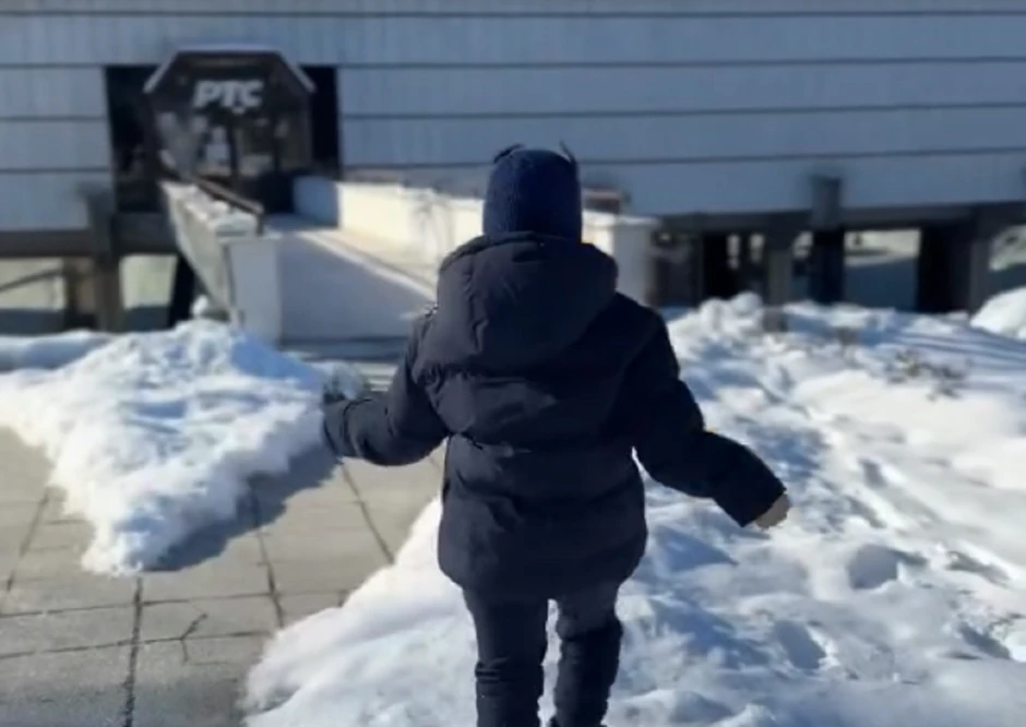 Kristina je podelila kako mali Rogan gazi po snegu i približava se zgradi RTS-a.