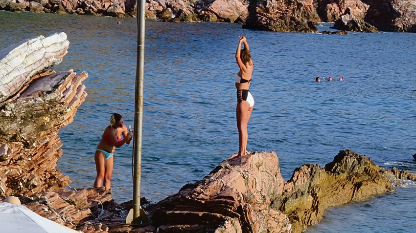 Na jednoj od plaža u blizini Svetog Stefana ekipa "Blica" uhvatila je lepu sestru glumice Slobed Mićalović, Draganu, kako sa drugaricom uživa u Crnoj Gori.